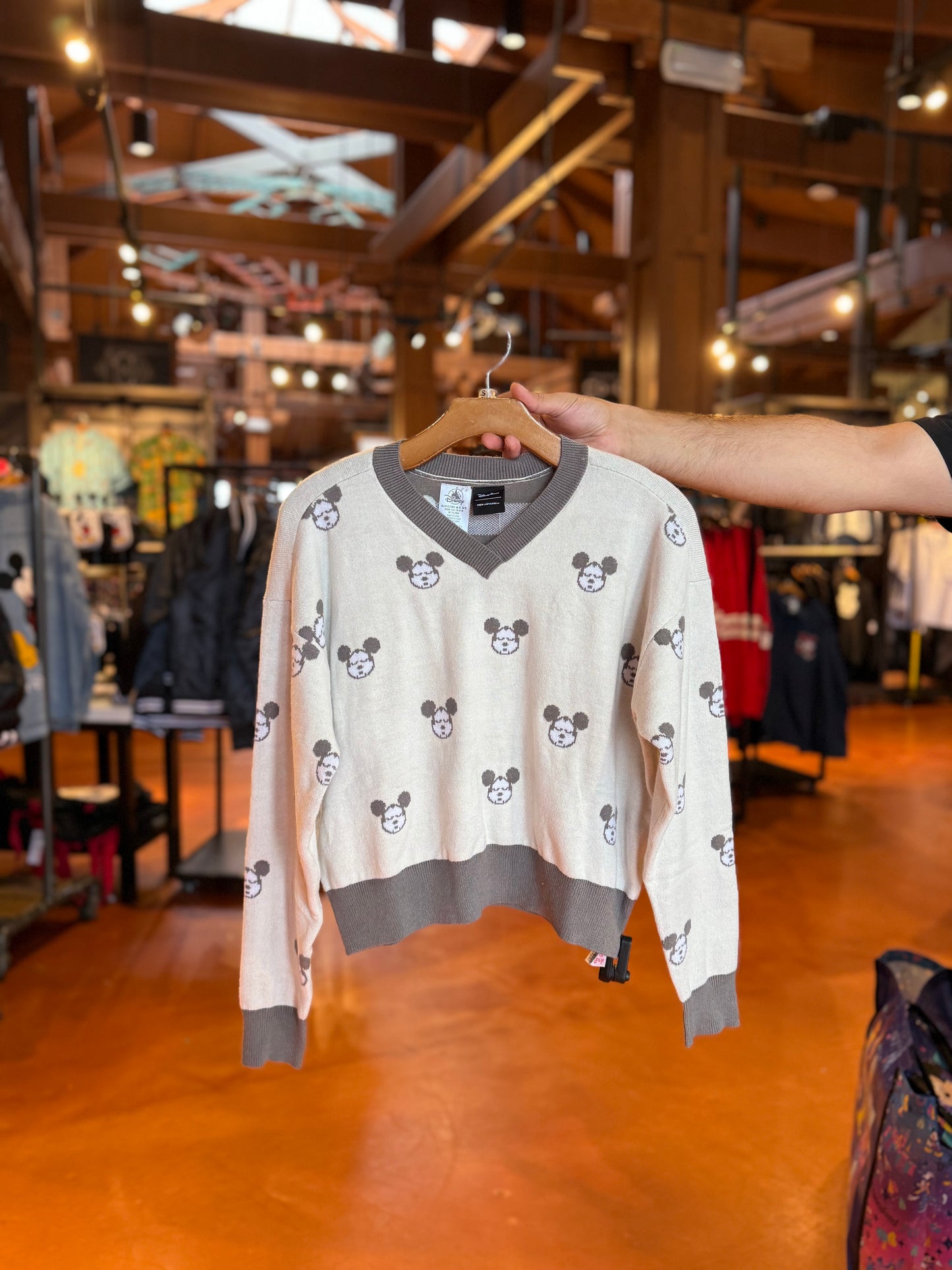 Sleeping Mickey Grey V-neck Sweater by Her Universe
