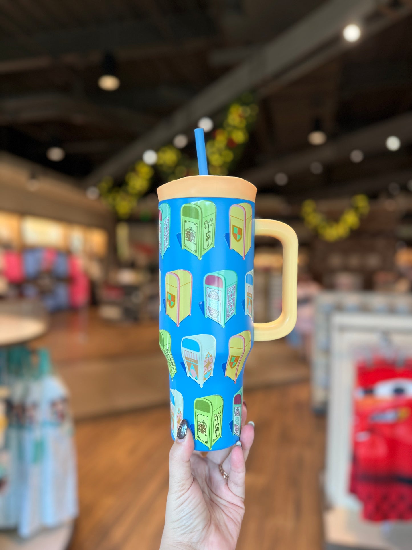 Disney Trash Cans Blue and Yellow Tumbler